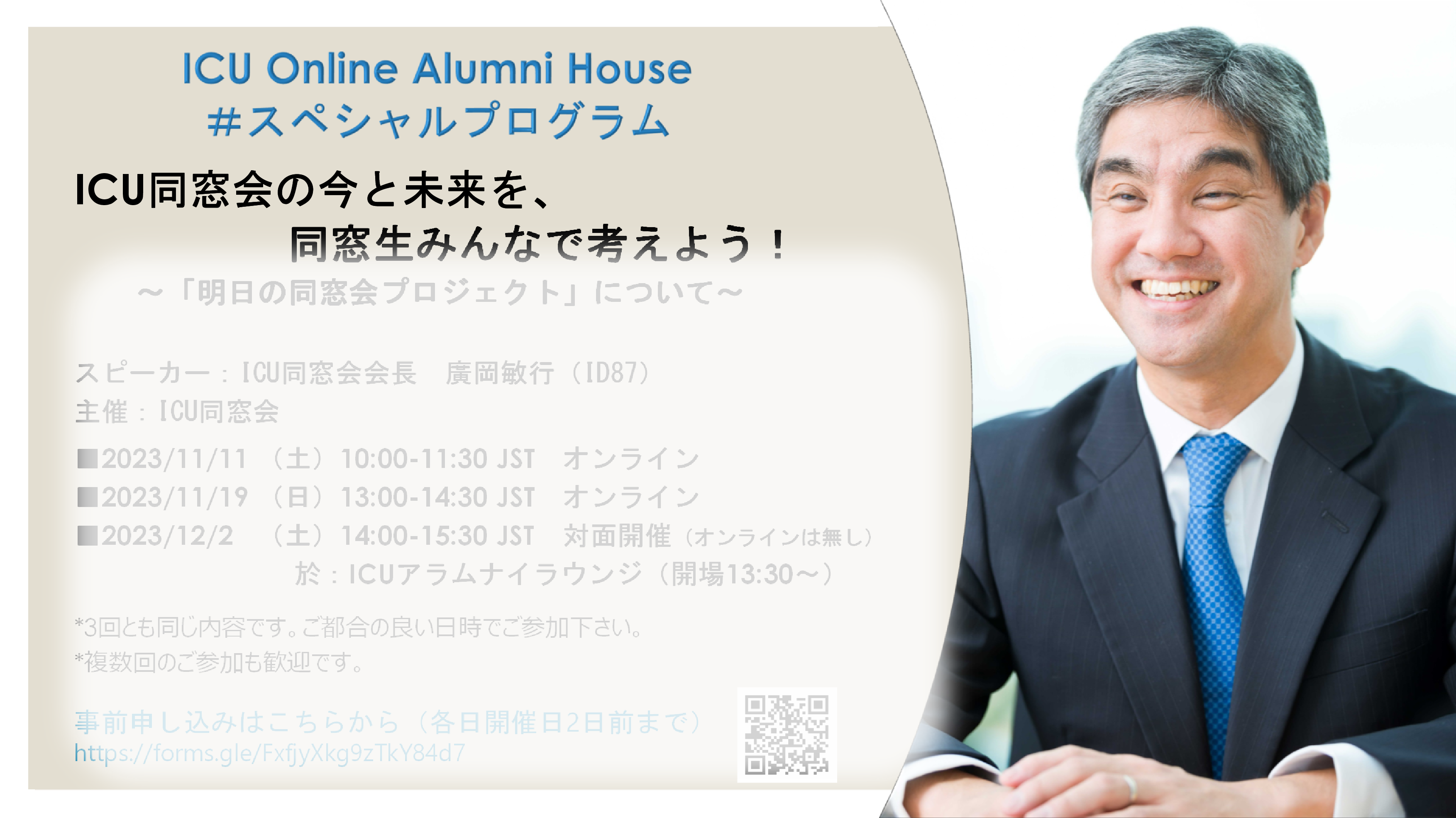 正会員向けサービス「貸ラウンジ:アラムナイ・ラウンジ」「Email Service@alm.icu.ac.jp」 オンラインコミュニティ「Online Alumni House」「同窓会費」についてご紹介