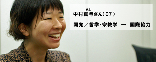 2003年にICUに入学。3年生修了時に退学・再入学の制度を利用し、イギリスのNGO団体を通して、アフリカのモザンビーク・アンゴラにて教育分野のボランティアを行う。2年後に大学に戻り、国際関係学科と人文科学科の学科間専攻で2009年に卒業。大学院を経て、JICA(国際協力機構)に就職し、現在(※インタビュー当時)は中南米地域の青年海外協力隊事業を担当している。