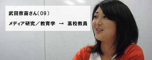 - そうは思うのですが、三年生になって周りが就職活動を始める時期になったら、やっぱり教員になるか、他の職業につくかの選択に迫られてすごく迷うと思うんです。教職を取りつつも、企業への就職にも悩んでいる学生達に対して、何かアドバイスいただけませんか?