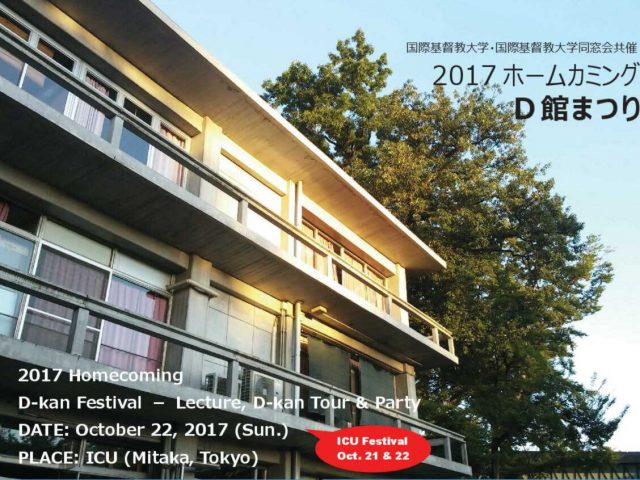 We would like to announce an additional speaker at the event. Prof. Etsuko Kato (Dean of Students, Chairperson of Diffendorfer Memorial Hall Renovation Committee) will speak about East Wing of D-kan in a session titled “Challenges of Project D: University of Tomorrow and an unfinished Student Center”. Many have made good memories at D-kan and some may remember a thank you event for D-kan which celebrated 60th anniversary last year. Come and learn about the future plan of D-kan. See you soon!