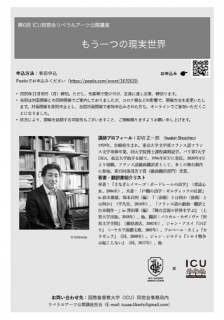 2015年から国際基督教大学(ICU)同窓会が主催している公開講座です。6回目に当たる今年は、2020年4月に国際基督教大学の学長に就任されたフランス文学者の岩切正一郎先生にご登壇いただきます。