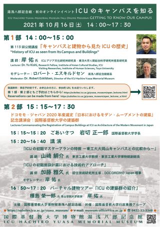 湯浅八郎記念館オンラインイベント「ICUのキャンパスを知る」では、第1部・第2部として2つのイベントを開催します。