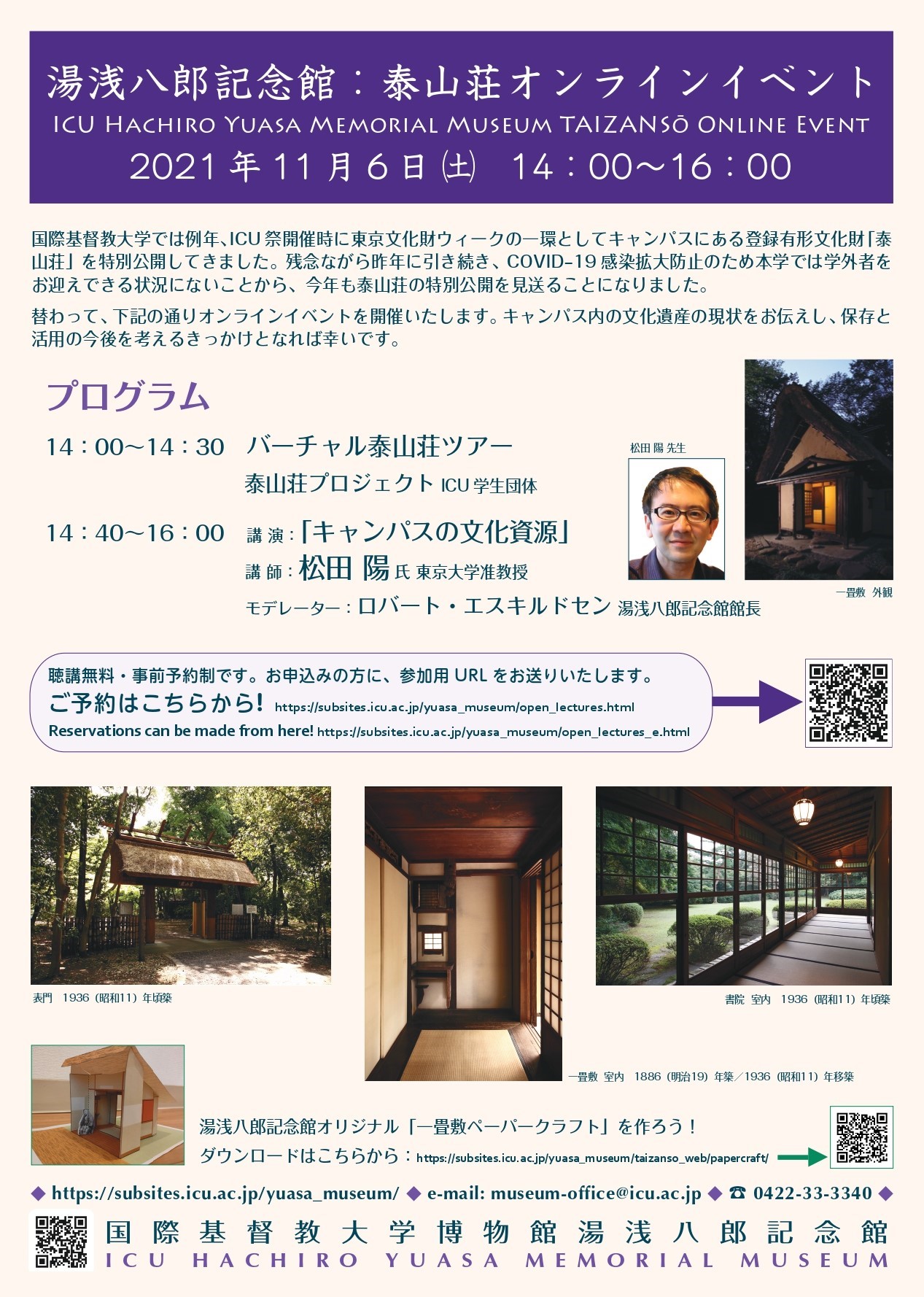 イベント詳細とご登録はこちらから→https://subsites.icu.ac.jp/yuasa_museum/open_lectures.html