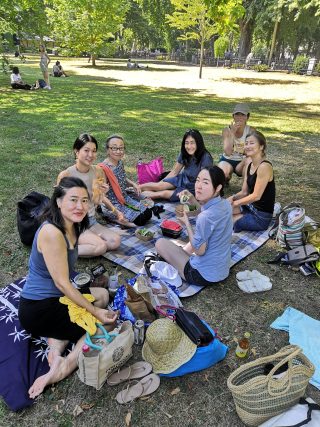 同窓生の皆さんとお会いして記念写真を撮った後、屋台でご飯を買って近くの公園/墓地の芝生の上に座りひたすらまったりするというスウェーデンっぽい(北欧っぽい?)時間を楽しみました。初対面でも気軽に色々と話ができるのは本当にありがたいです。少し遅めのお昼の後はビーチに移動し、サウナ&海に飛びこむ組と浅瀬のビーチでまったり組(私はこっちです)に分かれました。当日は本当によく晴れており海に入ると気持ち良かったです。その後は街中に戻ってレストランで夕ご飯を一緒しました。何を話したかは案の定覚えていませんがここでも話が尽きなかったです。