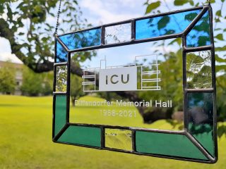 20万円以上の「グループ寄付」をお申込くださったグループには、個人顕彰板での顕彰に加え、D館東棟で使われていたガラスを再利用した特別製のグループ寄付顕彰板にて顕彰致します。