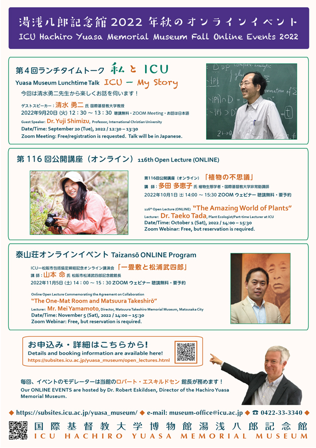 イベント詳細とご登録はこちらから→https://subsites.icu.ac.jp/yuasa_museum/open_lectures.html