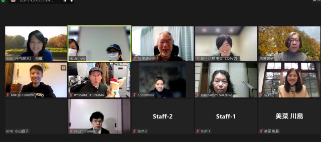 イベント終了後、「放課後」と題した自由参加の時間が設けられ、感想を述べあった後、事務局スタッフが実況する、泰山荘の見事な紅葉を楽しみました。