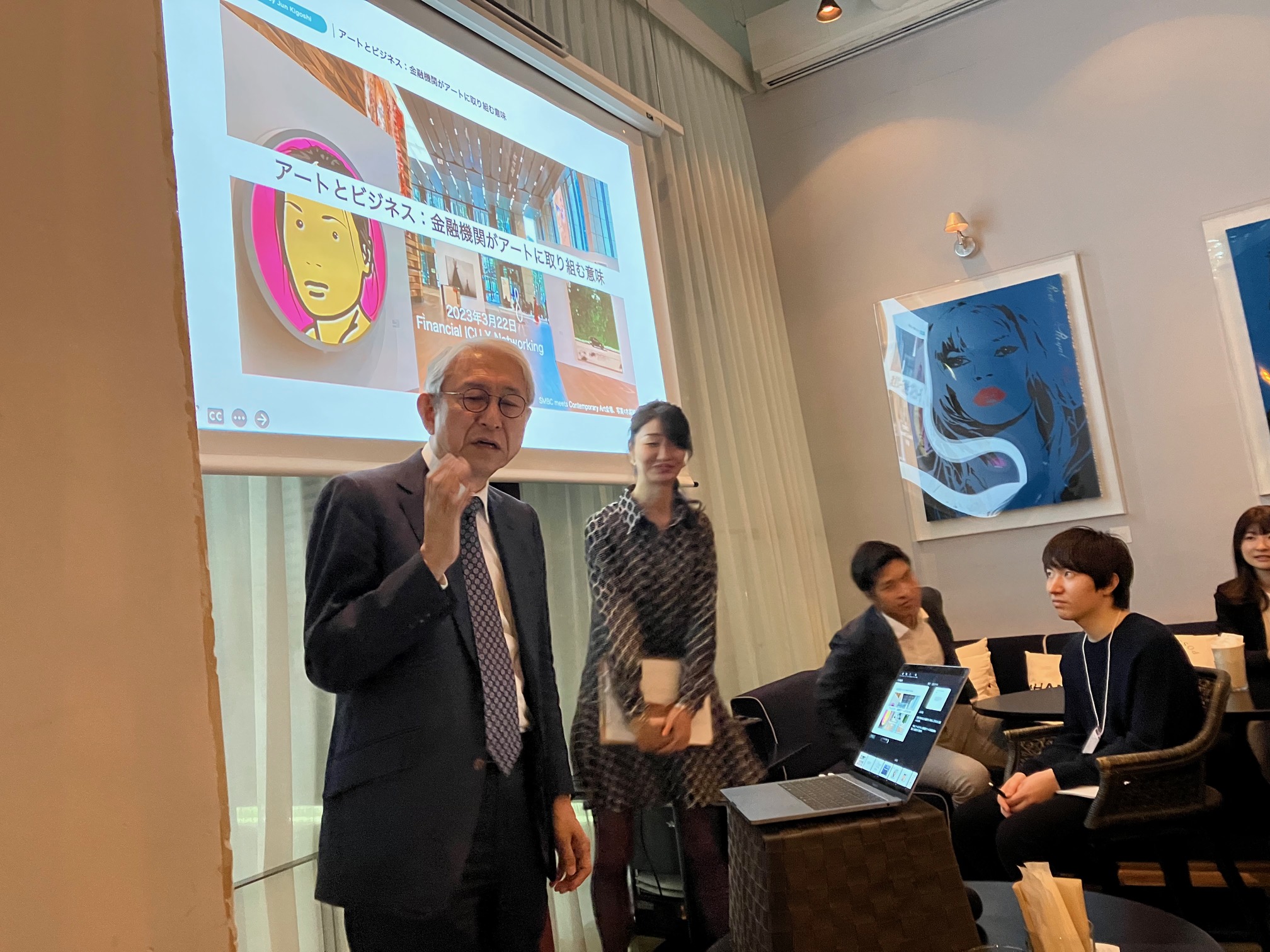 米国の金融機関が現代アートへの支援や文化財修復プロジェクトに取り組んだ意味や効果を紹介し、日本の金融機関のこれまでのアートとの関りを紹介する中で、金融機関がア ートに取り組むことで期待される効果や取り組むべき課題をお話し頂きました。また、そこから派生して、個人のアートとの関りへの提言もありました。