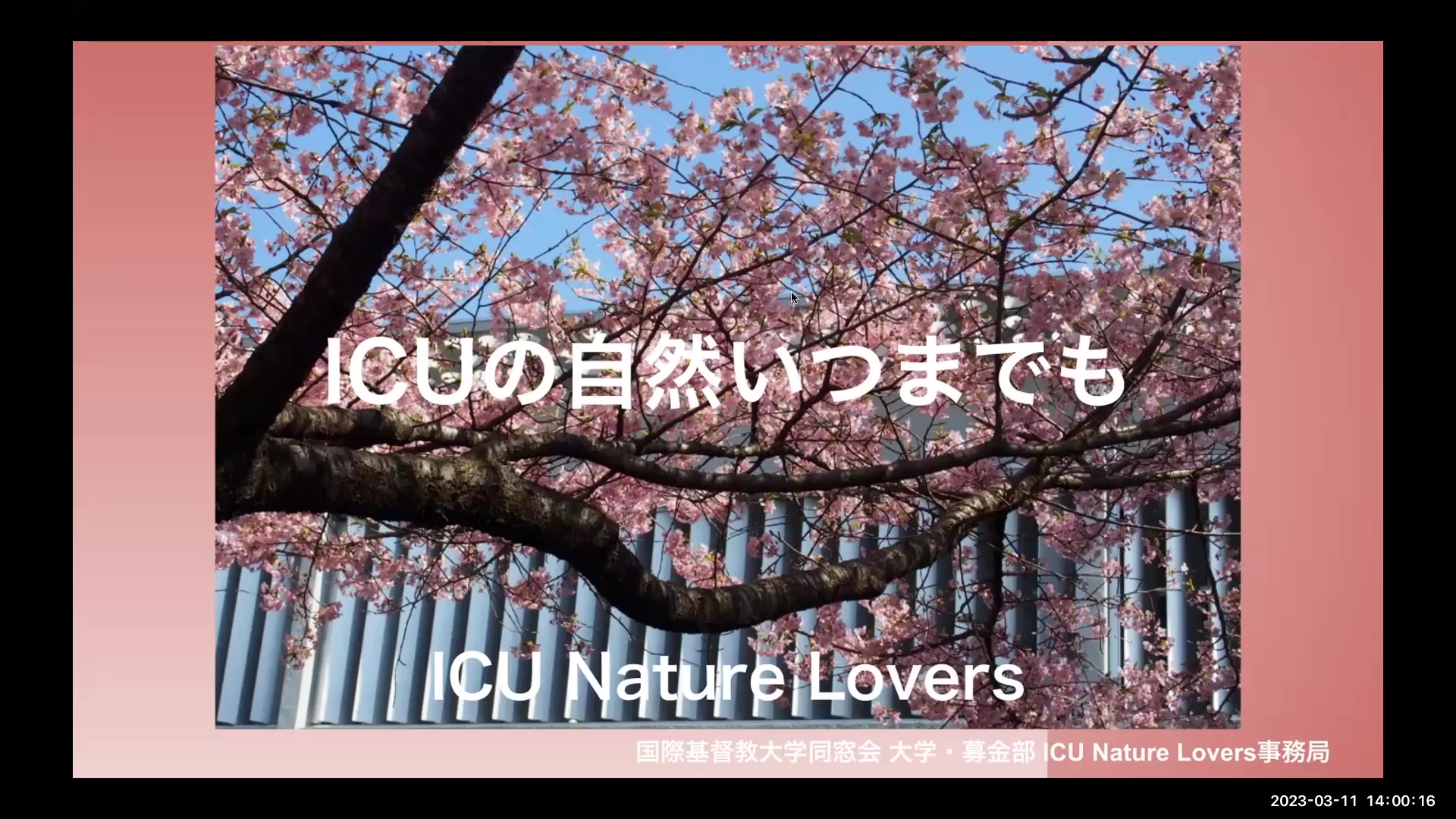 ICU Nature Lovers Vol.5 “サクラ” のアーカイヴ映像を期間限定で公開いたします。以下のURLよりご視聴ください。