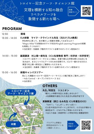 文理を横断する知の融合リベラルアーツを象徴する新たな場所「トロイヤ―記念アーツ・サイエンス館」完成を記念して、オープンハウスとホームカミングを開催いたします。