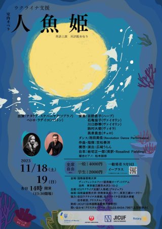 このたび、ウクライナ支援・室内オペラ「人魚姫」を国際基督教大学で上演する運びとなりました。