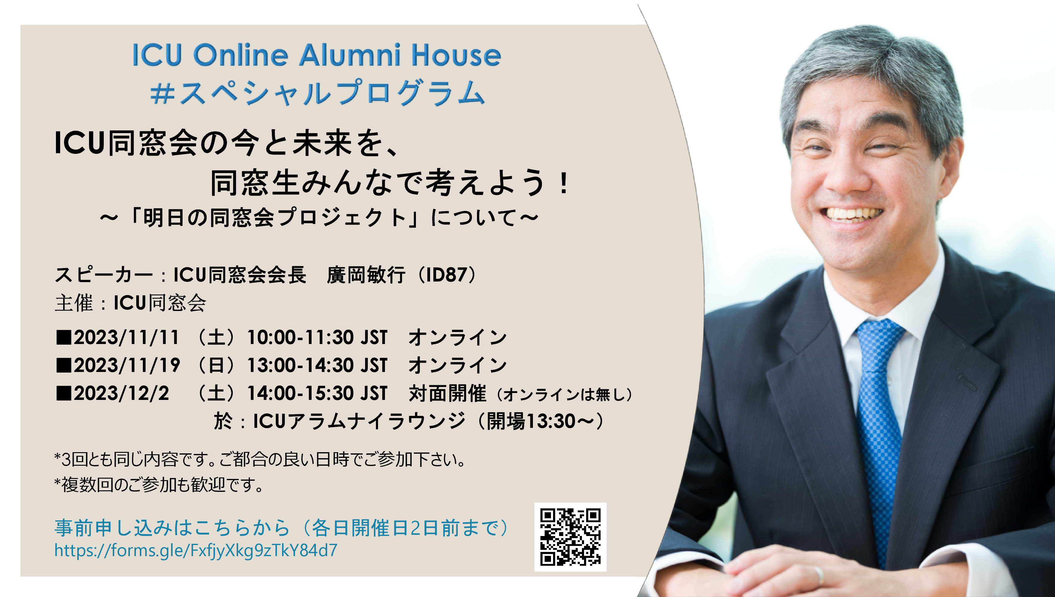 スピーカー:ICU同窓会会長 廣岡敏行(ID87)