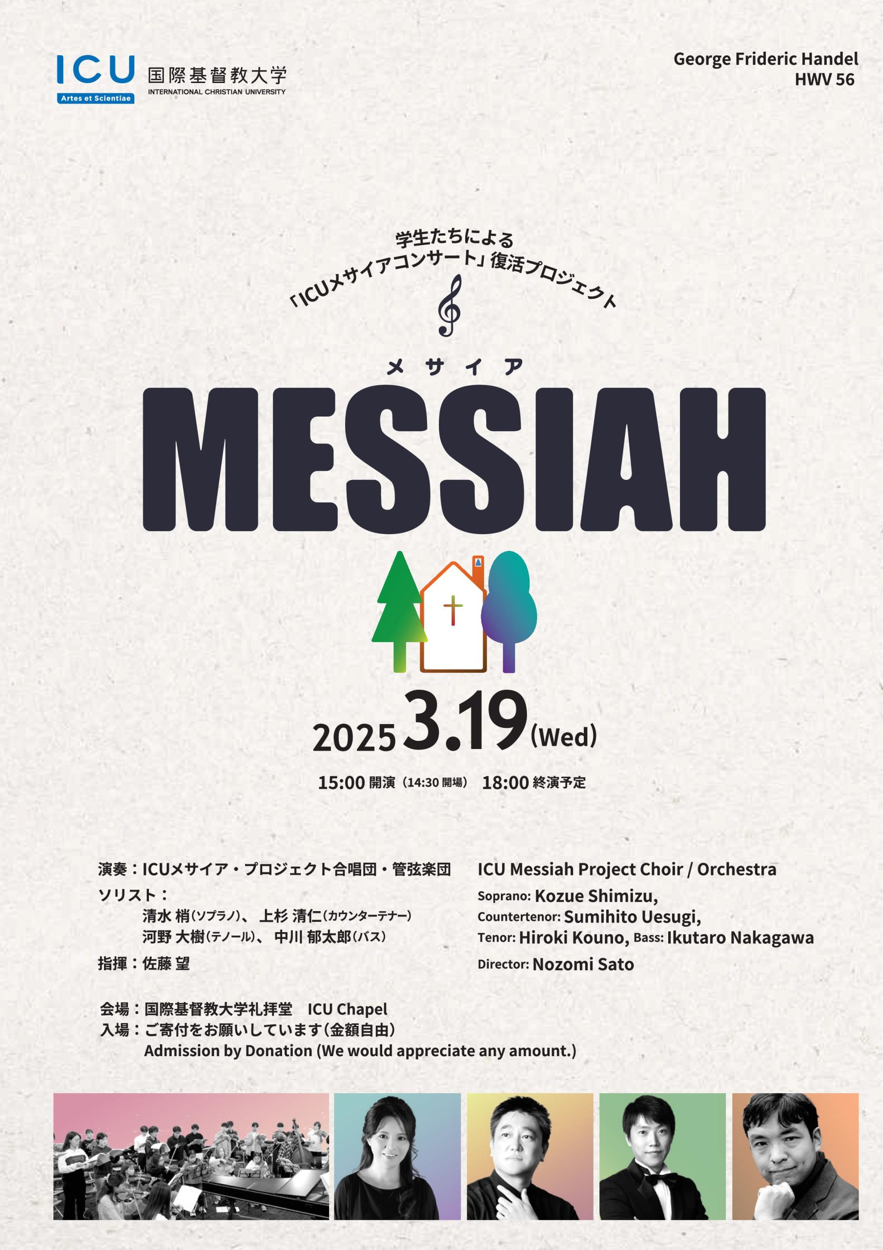 - 演奏:ICUメサイア・プロジェクト合唱団・管弦楽団