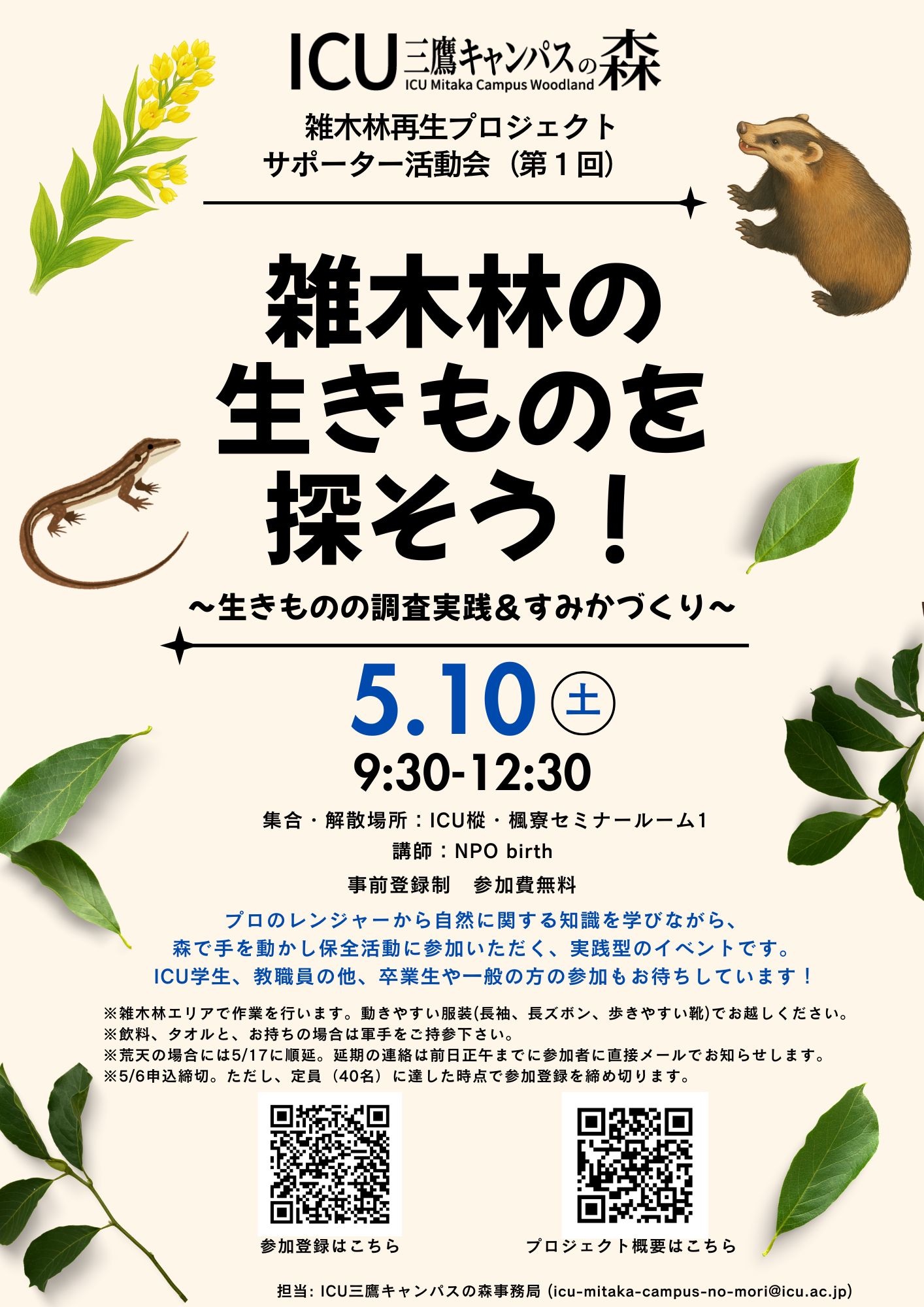 初回の5/10(土)は「雑木林の生きものを探そう!」