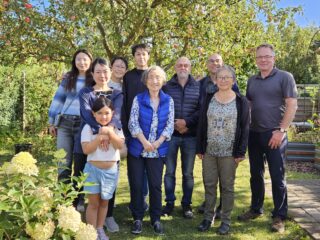 そんな季節の中、去る8月23日の土曜日、デンマーク支部では午後のバーベキューパーティーを開きました。支部会員のうちお一人が、コペンハーゲン郊外にご家族と持っているコミュニティーガーデン(デンマーク語でKolonihave)にご招待くださいました。当日の午前中は強めの雨も降る天気でしたが、パーティーが始まる12時頃になると青空が広がり、爽やかな風がお庭の植木の間をそよぐ恰好のバーベキュー日和。4家族計10人が集まりました。おいしく焼けたバーベキューのお肉や持ち寄ったお料理、デザートをいただきながら、デンマークでの生活やデンマークと日本の生活の比較、デンマークでの学校の様子や老後の話まで、世代を超えた話題で会話が広がりました。