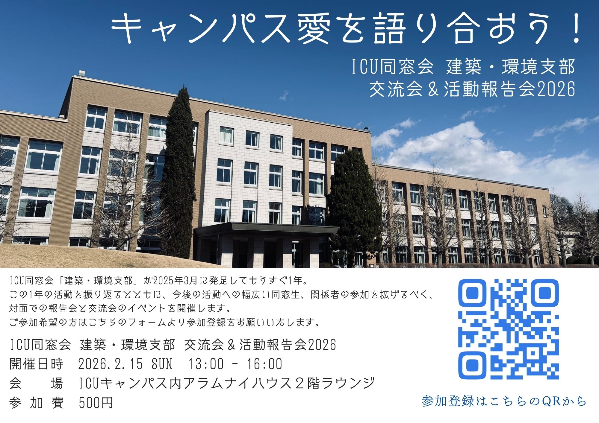 2025年3月に母校ICUの同窓会支部組織「建築・環境支部」を立ち上げて、細々とではありますが活動してきました。