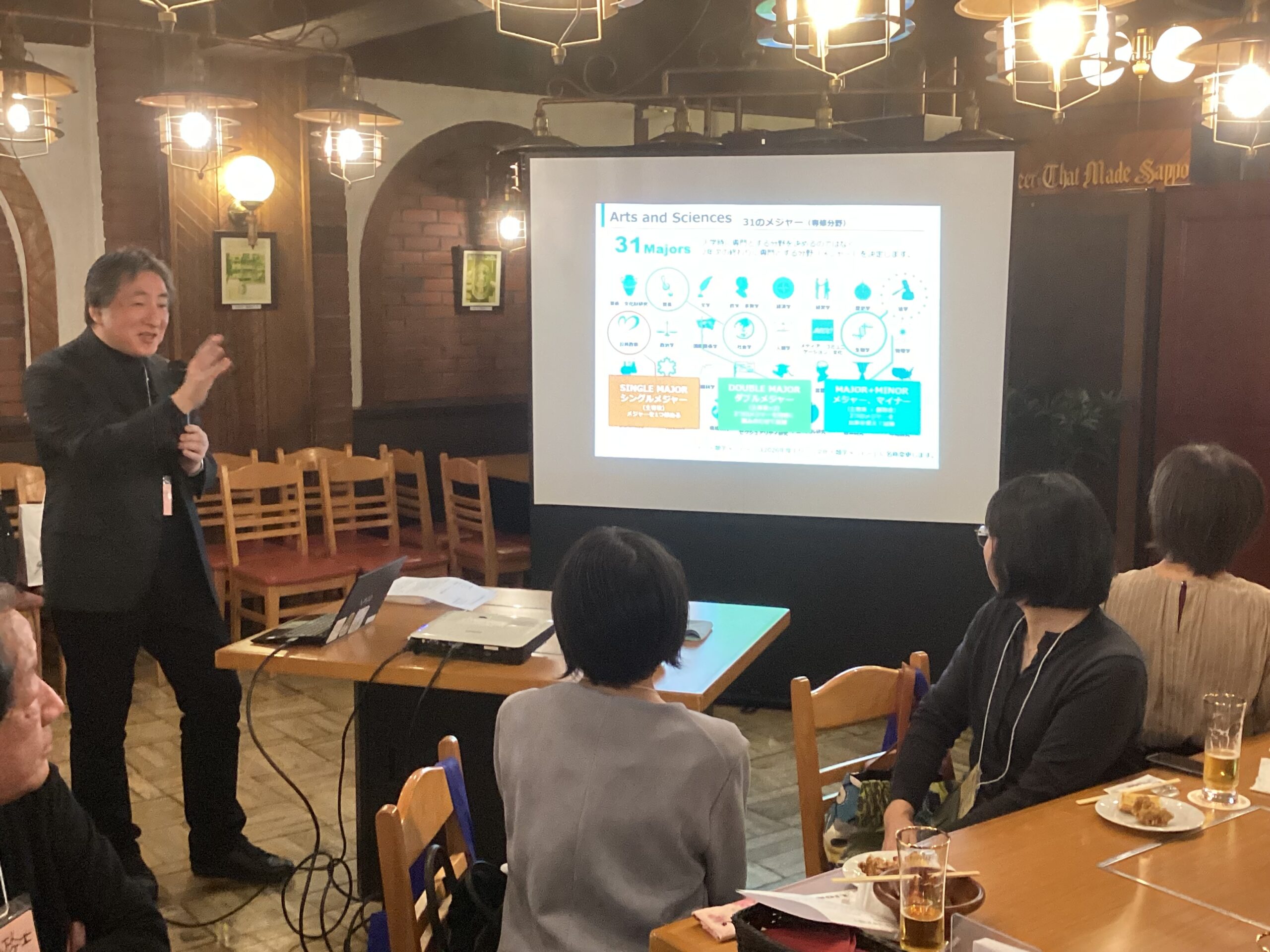 去る10月26日、ICU同窓会北海道支部懇親会を札幌市内の飲食店にて開催しました。当日は、大学から岩切正一郎学長、広報・社会連携部長の小瀧真利さん、同窓会事務局長の岸本誠さんにもご出席いただきました。