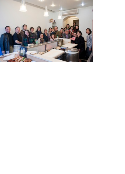 飲み物を片手に美味しいお惣菜に舌鼓を打ちつつ歓談、後半はお寿司を握っていただきました。カウンター席を全員でぐるりと囲み貸切ということで他のお客さんの声もなく和気藹々と恒例の近況報告を終わったらもう午後4時半! 興味がつきない皆さんのお話のあと記念写真をとって解散しました。たくさん作っていただいたお料理も残った分をお持ち帰りさせていただきました。