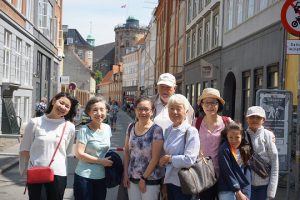 そして記念の集合写真は晴天の下、古い町並みを背景に撮り、会はお開きとなりました。デンマーク支部では、ほかの北欧各国にお住いの皆さまの参加もお待ちしております。支部代表メールアドレス宛に、ぜひご連絡ください。