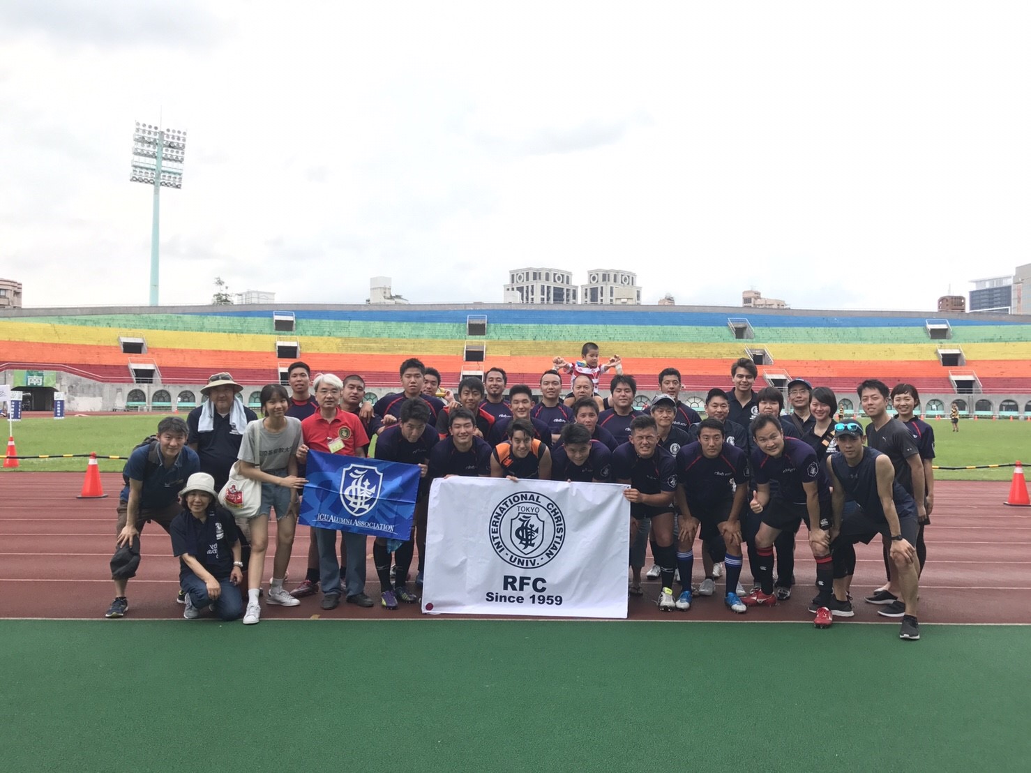6月10日と11日に台湾で開催された「Taipei 10s」というラグビーの国際大会に、ラグビー部のOBOG・現役学生とともに、約40名の遠征団を結成し参加して参りました。 その際に、台湾支部と現地で交流をさせていただきました。 急なご連絡にも関わらず、現地での試合の観戦に起こしいただいたり、 我々ラグビー部の遠征団のために、沢山のフルーツや記念のお菓子、お土産等をご用意いただいたり、 大変心温まるご支援をいただきました。 ICUラグビー部は2年毎に海外遠征に行っているのですが、 現地で同窓会の支部と交流するのは初めてでしたので、 非常に刺激になる経験をさせていただきました。 今回の交流の窓口となり、様々なご支援をいただきました Guo様含め、台湾支部の方に改めて御礼申し上げます。