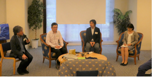 パネルディスカッションのイベントでは、人身売買に反対する活動等を行っているノット・フォー・セール・ジャパン (NFSJ)(http://notforsalejapan.org/)代表の山岡万里子さん(34期/ID90)、社会課題解決型ビジネス創りの支援を行っているGemstone(http://www.gemstone-global.com/)代表の深町英樹さん(47期/ID03) 、宮城の震災復興支援を地元で行っている認定NPO法人地星社(http://chiseisha.org/)代表の布田剛さん(42期/ID98)、から団体を興すに至った背景や、苦労したこと、うまくいったこと、ICU生とのつながり等について、お話をいただきました。興味が尽きない内容でしたが(この短い報告で伝えきれないのが残念です!)、モデレーターの中川英明さん(29期/ID85:アムネスティインターナショナル日本 事務局長)が絶妙のファシリテーションで時間内にまとめてくださいました。