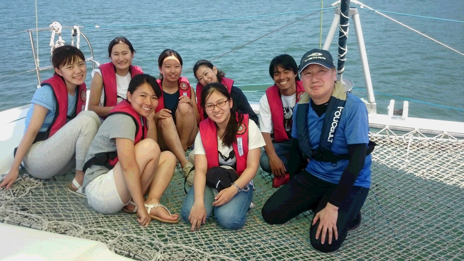 「豊島ゼミ」では、豊島の産廃問題の当事者の島民の方を語り部として講師に招き、実際の廃棄場所も視察して、その後学生との意見交換を行いました。学生からはたくさんの質問が出て、予定を超えて熱心な議論の場となりました。クルージングでは、17人乗りのヨットに乗るという、学生にとってほぼ初めての経験となり、忙しい調査実習の中で良い気分転換の場となったと思います
