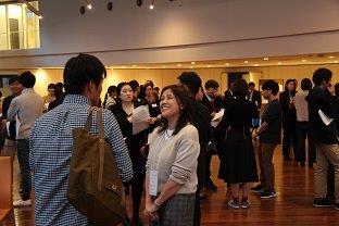 3時間半におよぶイベントでは、8つの「テーマ別」と10の「業界別」のグループに分かれて行われるグループトークと、フリートークが行われました。昨年に続き、今年も「自分の価値観に見合った将来の進路を考える」を念頭にテーマを設定し「専門性」や「国際」といった、自分が大事にしたい価値観という、企業名や業界とは別の視点で将来の働き方について考えました。業界別トークでは、同じ業界の異なる企業、職種、年代の同窓生たちの話を聞くことで、様々な視点から業界についての理解を深めていただきました。学生たちは緊張しながらも、先輩たちに積極的に質問しつつ意見を交わしていました。
