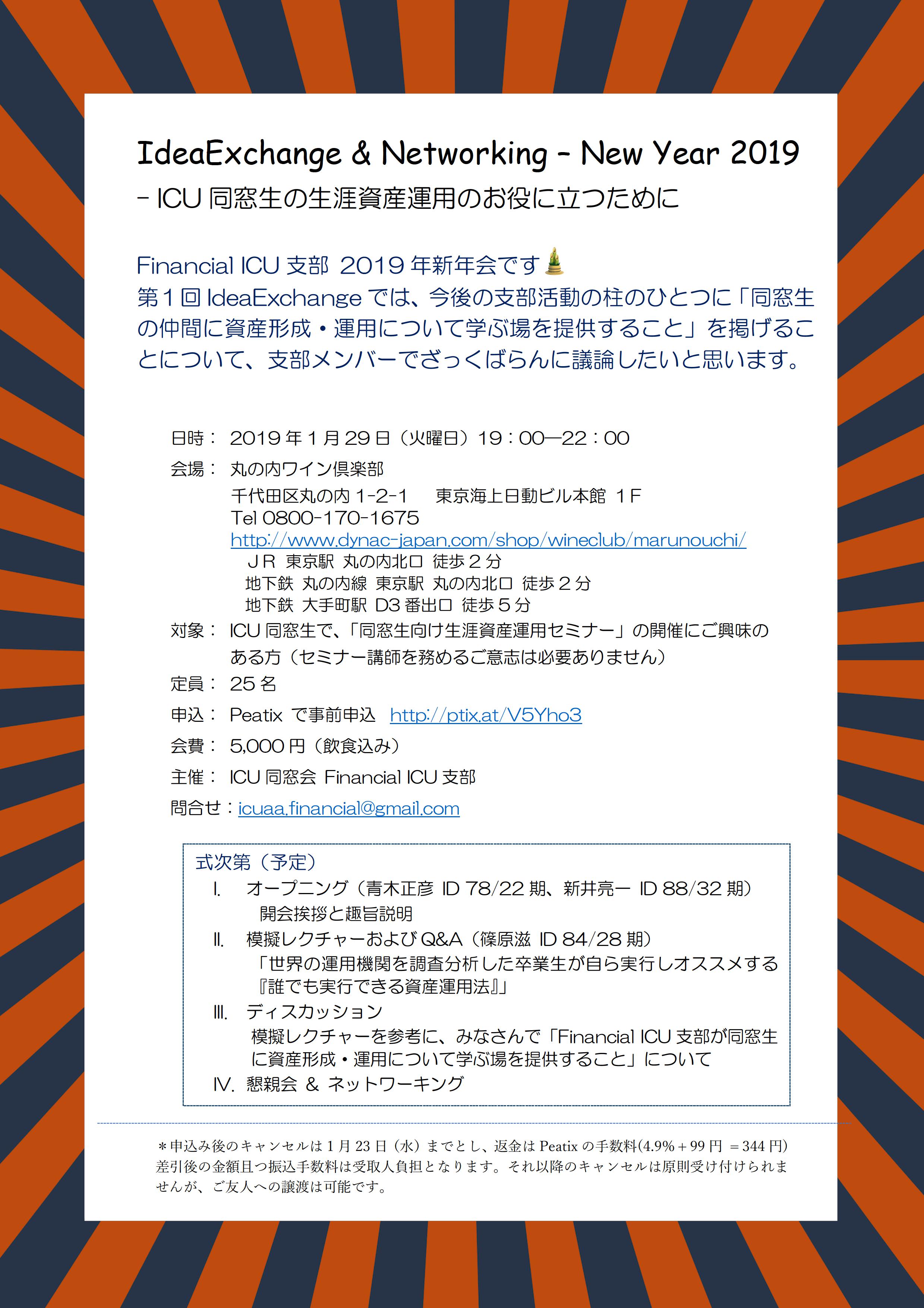 Idea Exchange & Networking – New Year 2019 – ICU 同窓生の生涯資産運用のお役に立つために