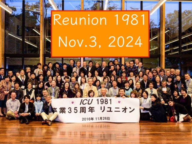 FROM ALUMNI ホーム / 同窓生から From Alumni 同窓生から 同窓生からのページです 同窓生を対象にしたイベント 報告 2025年9月13日 | イベント ID84セクションB リユニオン報告(2025/9/6) ICU同窓会事務局 から 終了 2025年8月26日 | イベント 11/8 ID85(29期)卒業40周年記念リユニオンのご案内 ICU同窓会事務局 から 報告 2025年5月27日 | イベント ICU#98#99#00 三期合同大同窓会 開催ご報告 (4/12) ICU同窓会事務局 から すべてを表示する 同窓生からのお知らせと近況報告 NEW 2025年12月2日|同窓生近況 12/14 ICU卒業生有志による同窓会開催のお知らせ ICU同窓会事務局 から 2025年10月17日|同窓生近況 『ピクチャーブライド ~海を渡って恋となれ~』出版のお知らせ ICU同窓会事務局 から 2025年10月15日|同窓生近況 訳書『危険な言語』出版のお知らせ ICU同窓会事務局 から 2025年9月22日|同窓生近況 「ICU祭」クラウドファンディングのお願い ICU同窓会事務局 から すべてを表示する 訃報 長谷川 朝雄(HASEGAWA, Asao)様 詳細 梨元 實(NASHIMOTO, Minoru)様 詳細 川崎 曻(KAWASAKI, Noboru)様 詳細 高瀬 千賀子(TAKASE, Chikako)様 詳細 すべてを表示する