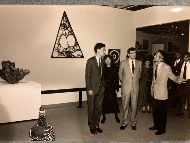 工藤哲己の展示室で、前列右ジェルマン・ヴィアット、フランソワ・レオタール文化相、岡部、アルフレッド・パックマン ©Centre Pompidou