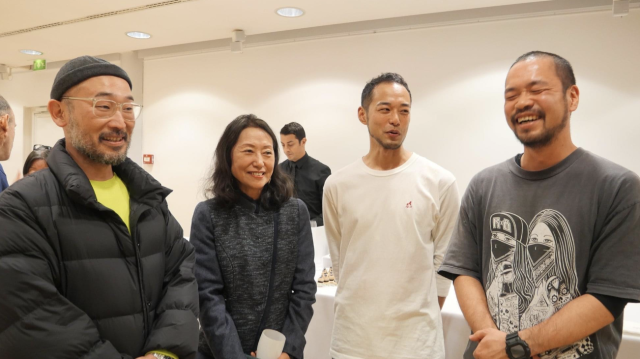 オープニング・パーティーの記念写真。パリ日本文化会館での現代アーティスト・シリーズ「トランスフィアの最終回となったこの展覧会は、コロナによるロックダウンで、会期の2週間前に閉会となった。