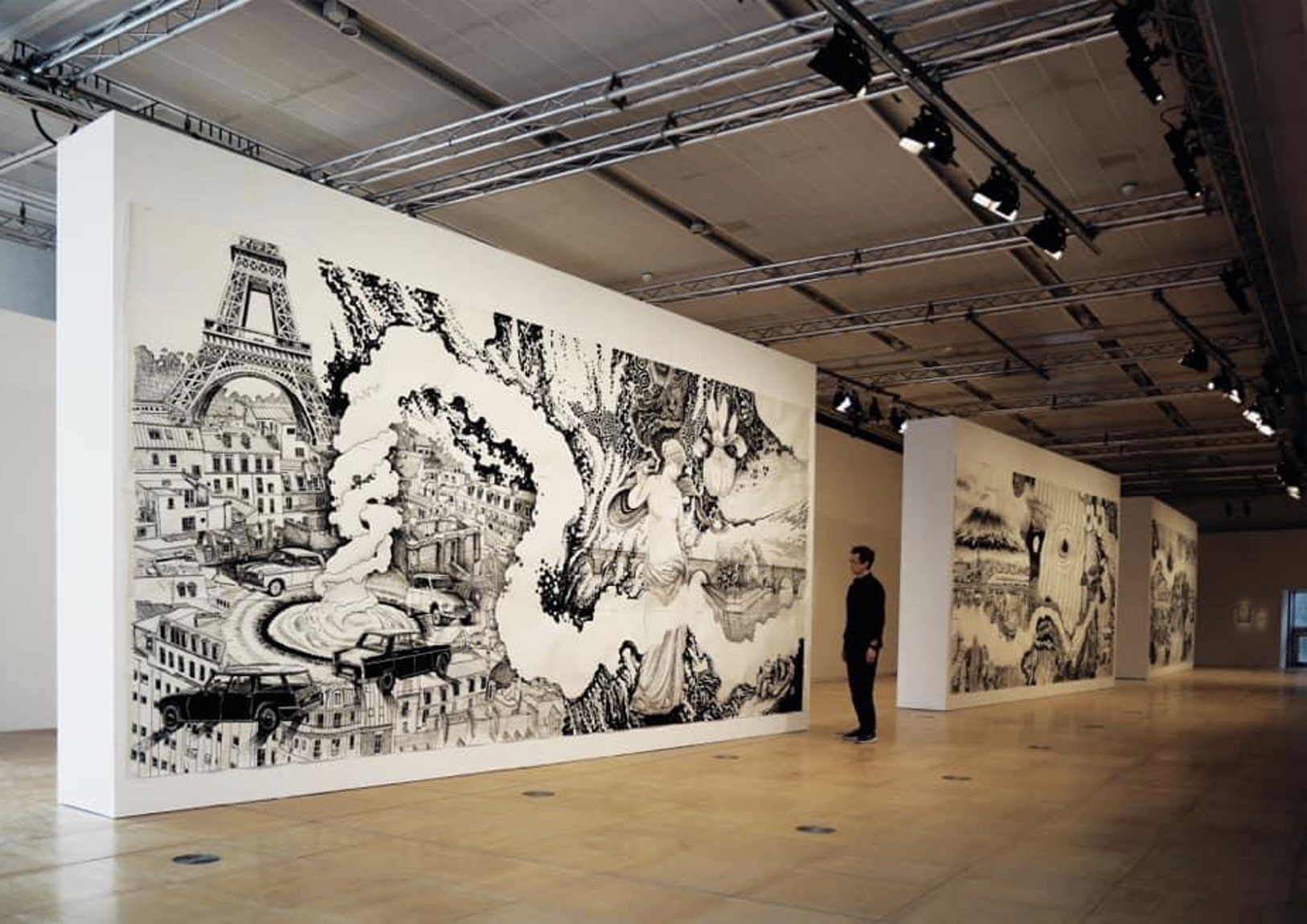 - 彼は日本では仕事をしてましたが、それを辞めて行ったパリでは留学生で、父がパリに出張で行った時にまず会ってもらいました。その後フランスで建築デザインの仕事に携わりたいと思っていた頃、ポンピドゥー・センターの建設に建築家が必要で、ピアノ・アンド・ロジャースのチームに加わりました。私はルーヴル学院で勉強を始めたばかりで、彼は薄給の一番若いスタッフでしたから、すごく生活は大変で、5年間ほど父から留学時のように仕送りを続けてもらってました(笑)。以前、半年フランスに留学させてもらった時に、パリのサント=ノーレ通りにあるジルベール・ジューヌという老舗の画廊で、父の友達で和紙に墨で南画風な絵を描いていた画家の展覧会を開くから、手伝うようにと言われ、パリで初めて展覧会に関わったんです。父には長い間思い描いていた野望があって。