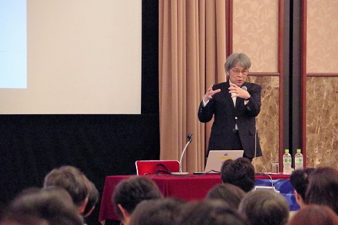 村上先生は1936年、東京生まれで、専攻は科学史、科学哲学、科学技術社会論。講演で先生は、前回の講演の中心テーマだった「リベラルアーツ」の重要性にさかのぼって話をスタート。「リベラルアーツ」における「教養」は、「自分が生きてきたのとは違う世界に自分の心を開いていく」ということのほかに、「自分の中に何かを確立する」という意味合いがあり、後者の意味での「教養」は、英語のカルチャーよりも、ビルドゥングスローマン(教養小説)などで使われるドイツ語のビルドゥングス(自己形成)が近いと述べました。