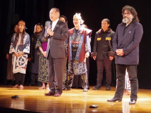 演出の両氏は、「アイヌ民族への差別はおよそ150年続いています。 かつて何があったのか、ドラマでこそ語れる真実がある」(秋辺氏)、 「アイヌ民族やシェイクスピアを身近に感じてほしい」(下館氏)と本番に臨み、幕が下りた後、観客は役者たちの迫真の演技に惜しみない拍手を送りました。