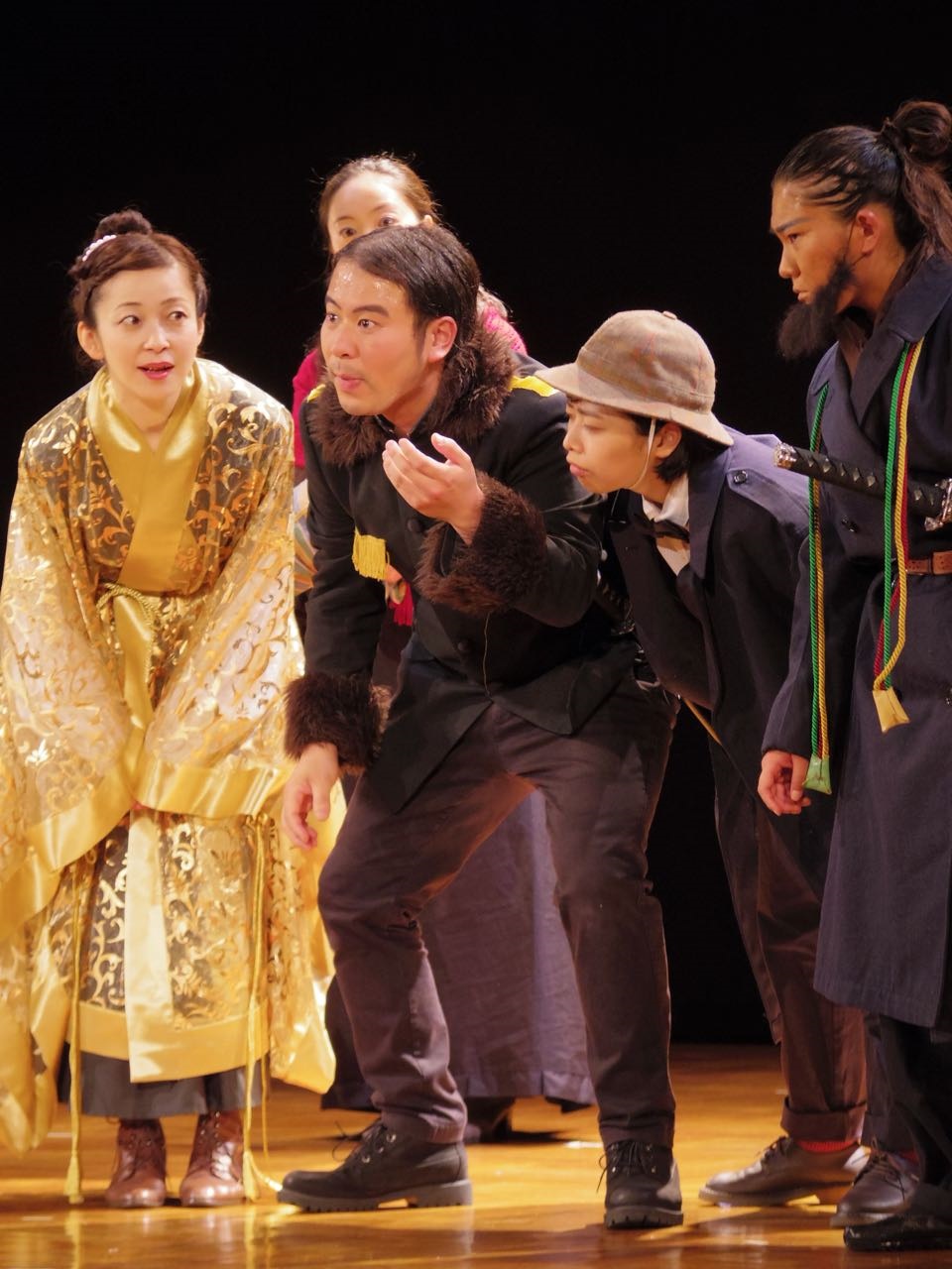 脚本・演出はシェイクスピア・カンパニー主宰 下館和巳氏(本学教養学部 1979 年卒。 大学院博士後期課程在籍中に東北学院大学に奉職)。この作品ではアイ ヌ民族のアーティスト 秋辺デボ氏を共同演出に迎え、「アイヌ民族」の踊り子たちと「和人」の役者たちが共演しました。