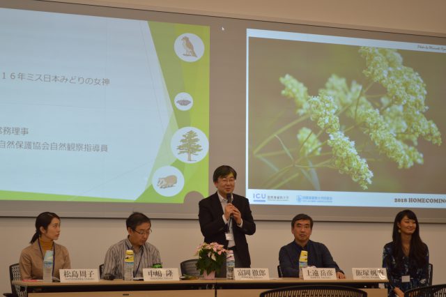 昼食後は「これからどうする?ICUの自然」と題したパネルディスカッション。キャンパスの豊かで貴重な自然環境は、一方で何も手を打たなければ、動植物の外来種の拡大、研究フィールドへの人間の立ち入り、継続性を欠いた管理などの問題が拡大するリスクとも隣り合わせであることが浮かび上がってきました。